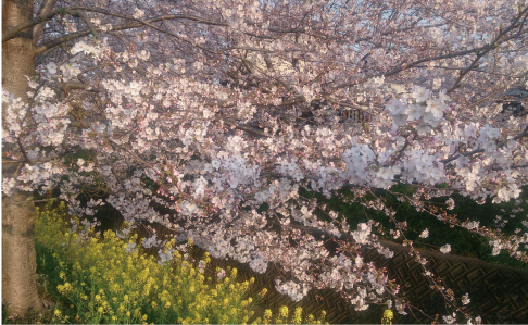 袋川堤に約2kmに渡る、桜と菜の花のコラボレーションは癒されます。